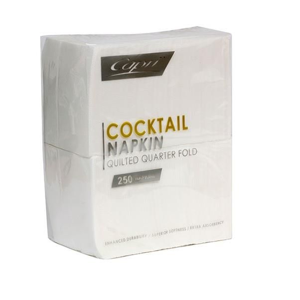 Napkins Cocktail 1/4 fold quilted white 2ply
