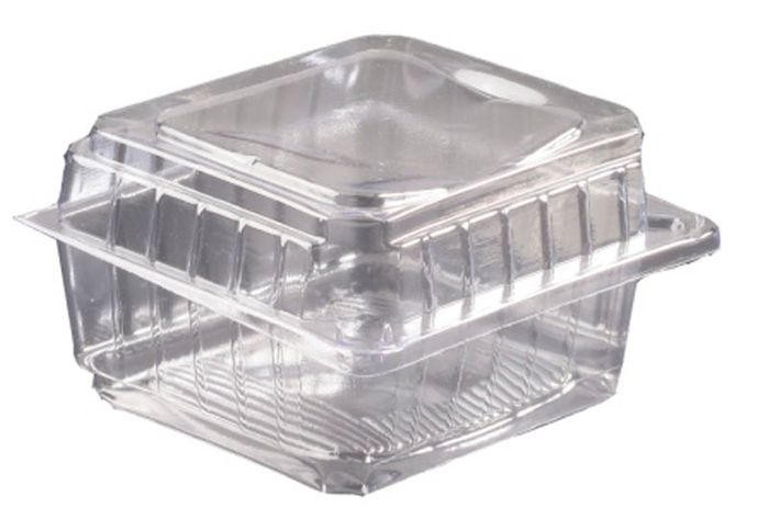 Containers Clam burger hinged lid recyclable clear PET 100mm (L) 90mm (W) 65mm (H)