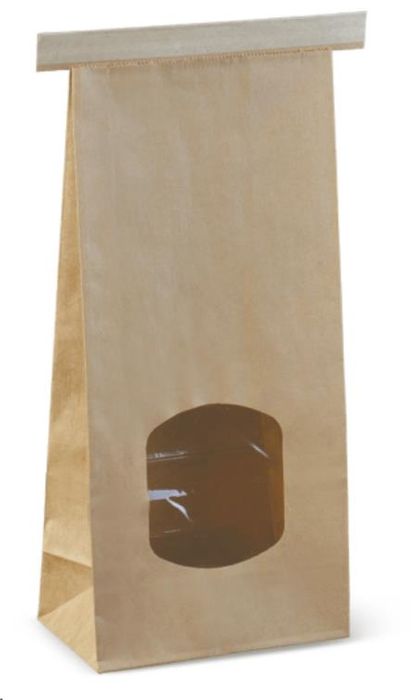Tin Tie window brown paper/BOPP/polypropylene 246mm (L) 115mm (W) +72mm (G)