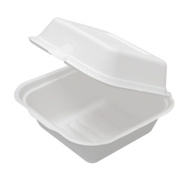 Containers Clam burger hinged lid biodegradable natural fibre square 135mm (L) 135mm (W) 78mm (H)