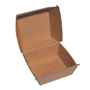 Containers Clam burger hinged lid recyclable brown fluted board 105mm (L) 105mm (W) 85mm (H)