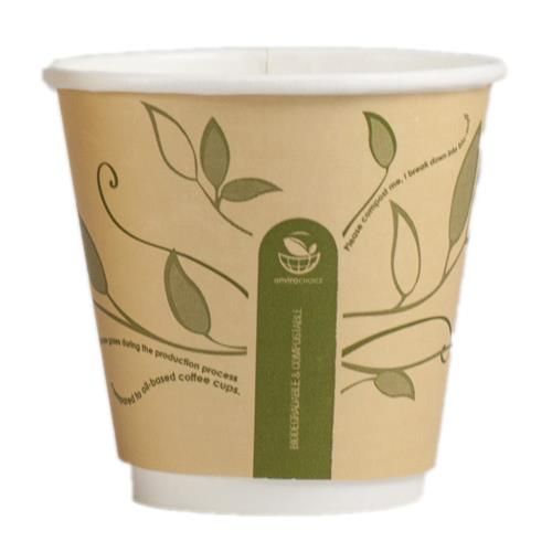 Coffee Cups smooth double wall compostable brown/green leaf paper 8oz 90mm (D)