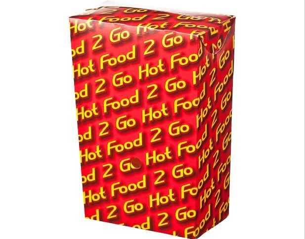 Boxes "Hot Food 2 Go" folded recyclable printed cardboard rectangle 91mm (L) 91mm (W) 135mm (H)