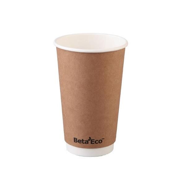Coffee Cups smooth double wall recyclable brown paper 16oz 90mm (D)