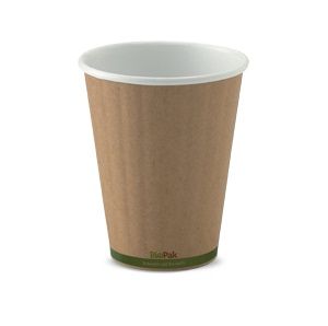 Coffee Cups smooth double wall biodegradable brown/green base line paper 8oz 90mm (D)