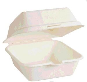 Containers Clam burger hinged lid biodegradable natural fibre square 165mm (L) 165mm (W) 89mm (H)