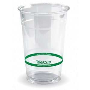 Water/Juice Cups biodegradable clear/green stripe PLA 600ml