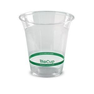Water/Juice Cups biodegradable clear/green stripe PLA 360ml