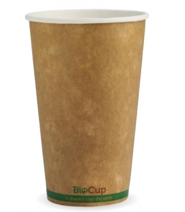 Coffee Cups smooth single wall biodegradable brown/green base line paper 16oz 90mm (D)
