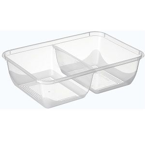 Containers Microwave unhinged lid 2 compartments recyclable clear polypropylene rectangle 650ml