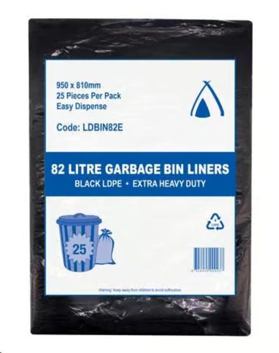 Bin Liners extra heavy duty black polyethylene medium density 82L 960mm (L) 810mm (W)