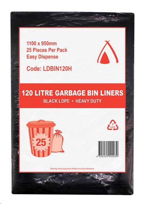 Bin Liners black polyethylene low density 120L 1100mm (L) 950mm (W)
