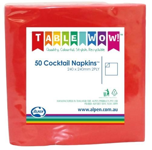 Napkins Cocktail 1/4 fold red 2ply