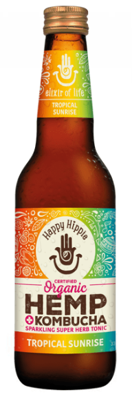 Happy Hippee Kombucha HEMP glass bottle tropical sunrise 330ml x 12