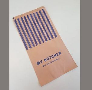 Butcher Bags Block Bottom blue label #19 brown triple wet strength 495mm (L) 240mm (W) +115mm (G)