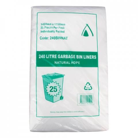 Bin Liners natural polyethylene high density 240L 1450mm (L) 1150mm (W)