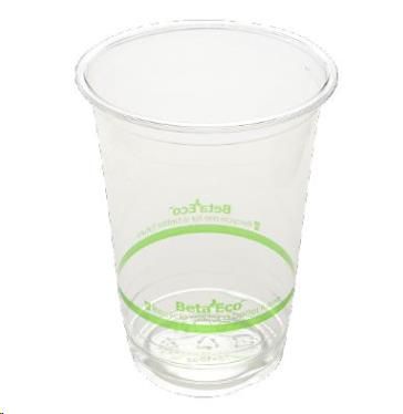 Water/Juice Cups recycleable clear/green stripe RPET 285ml