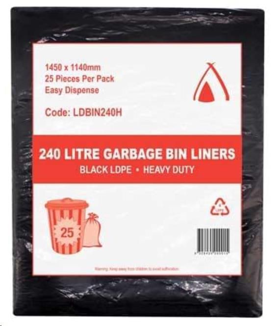 Bin Liners black LDPE bin liners 240L 1450mm (L) 1140mm (W)