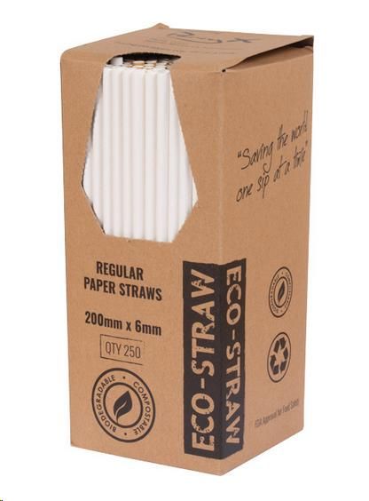 Straws Regular compostable white paper 6mm (D) 200mm (L) pkt 250