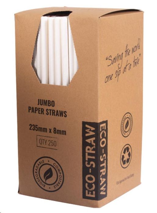 Straws Jumbo compostable paper white 8mm (D) 235mm (L)